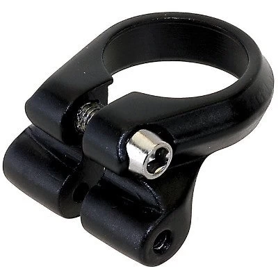 En aluminium noir, cet anneau muni d’œillets ou trous filetés sur les côtés se monte à l’arrière du vélo sur le tube de selle du cadre à l’aide d’une vis fournie. Trois diamètres sont disponibles.