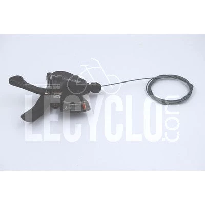 Le montage de cette manette est simple. Il se fait via une bague à fixer sur le guidon du côté gauche. Un affichage optique vous permet de voir à quelle vitesse vous êtes actuellement. Cette manette est livrée avec son câble, long de 1800 mm. Vous pouvez recouvrir ce câble avec une gaine de dérailleur de 2 mètres proposée en option.