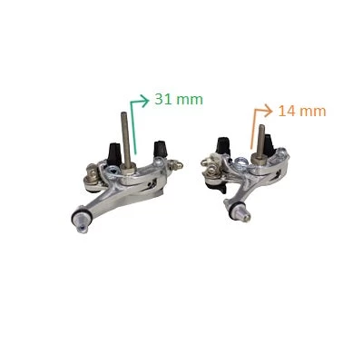 En aluminium, les étriers de frein sont prévus pour être montés sur des vélos de course ou de route. Le set de 350 g comprend un modèle avant et un modèle arrière. Les étriers sont ajustables entre 39 et 51 mm. Pour procéder à l’installation de ces freins, il faut que les trous dans lesquels passent la vis pour la fixation fassent au moins 6 mm de diamètre.