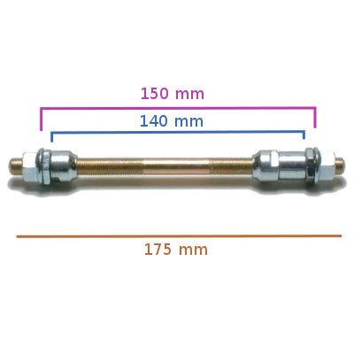 Cet axe plein à écrous remplace un axe de roue à axe plein. L’axe a une longueur de 175 mm et un filetage en M10.