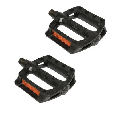 Les pédales noires sont équipées d’un filetage 1/2, ce qui se retrouve le plus souvent sur les vélos enfants. Pour maximiser la sécurité du cycliste sur route, elles sont munies de catadioptres réfléchissants.