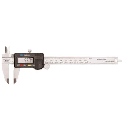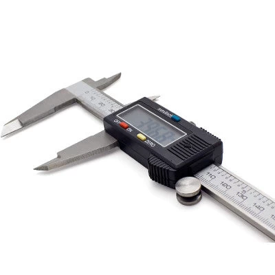 Idéal pour obtenir des mesures de pièce ultra-précises, le pied à coulisse permet de prendre des mesures entre 0 et 150 mm. Il possède une résolution de 0,01mm. Il permet de mesurer via une double échelle en pouces et en mm selon les besoins. Cet instrument est à la fois manuel et digital, il vous est possible de voir le résultat aussi bien sur l’écran que sur l’échelle inscrite sur l’outil.