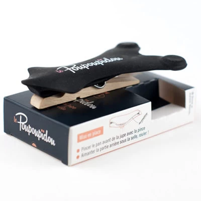 A la fois pratique et original, le pince jupe Le Poupoupidou permet aux femmes cyclistes de faire du vélo en jupe sans souci. Problématique bien connu des cyclistes, surtout en été, faire du vélo en jupe peut être contraignant. Au moindre coup de vent, hop la jupe risque de se soulever et il est parfois nécessaire de la maintenir en place d’une main. Le Poupoupidou est la solution 100% française, imaginée et conçue par un couple à Nantes. Par ailleurs, en 2015, le produit a reçu la médaille d’argent du Concours Lépine.