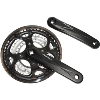 Le pédalier 3 plateaux pour VTT 9 vitesses argent est lui aussi disponible. En noir, le pédalier triple 6/7/8 vitesses 2/38/48 est disponible pour les boitiers de pédalier de 119mm.