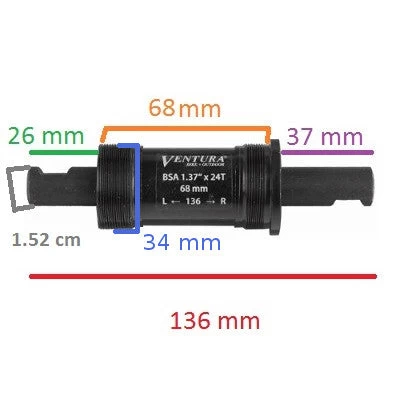 Le boîtier mesurant 68 mm de long, il s’adapte sur la majorité des vélos relativement récents. Notez que pour les vieux vélos, un boitier de pédalier à roulement à billes sans filetage avec axe pour clavette, comme on le trouvait d’origine, est également disponible.