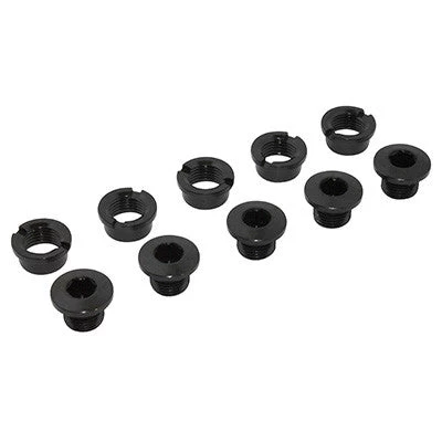Ces vis cheminées servent à fixer solidement le plateau sur le pédalier du vélo. Ces vis sont courtes et permettent d’installer un plateau unique sur le pédalier, c’est ce qu’on nomme un monoplateau de vélo. Les vis et les cheminées sont fournies par paire et ce kit comprend 5 paires de vis cheminées. Elles sont compatibles avec les pédaliers 5 points.